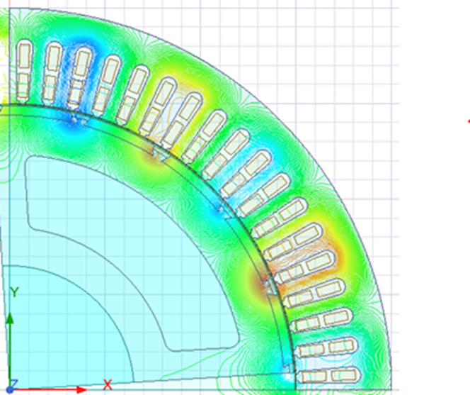 గ్రీన్ మరియు తక్కువ-కార్బన్ ప్రయాణం కోసం ప్రపంచవ్యాప్త న్యాయవాద నేపథ్యానికి వ్యతిరేకంగా, రైలు రవాణా నిర్మాణం ఇంధన ఆదా కోసం అధిక అవసరాలను ముందుకు తెచ్చింది. అందువల్ల, ఇతర ఎలివేటర్లతో పోలిస్తే, సబ్వే ఎలివేటర్లకు పెద్ద ప్రయాణీకుల ప్రవాహంతో పట్టణ దృశ్యాలను తీర్చడానికి ట్రాక్షన్ మెషీన్లు అధిక సామర్థ్యాన్ని కలిగి ఉండాలి. సుమారుగా 1 m/s వేగంతో ఎలివేటర్ల కోసం, వాటి సామర్థ్యం 90% వరకు చేరుకుంటుంది. అంతేకాకుండా, ఎలివేటర్ సంస్థాపన యొక్క అవసరాల ప్రకారం, ట్రాక్షన్ మెషిన్ యొక్క బరువు మరియు పరిమాణాన్ని నియంత్రించాలి. అందువల్ల, ట్రాక్షన్ మెషిన్ డిజైన్ ఇంజనీర్లు విద్యుదయస్కాంత రూపకల్పనలో గొప్ప అనుభవాన్ని కలిగి ఉండాలి, ఆధునిక విద్యుదయస్కాంత క్షేత్ర విశ్లేషణ సాఫ్ట్వేర్తో విద్యుదయస్కాంత రూపకల్పనను ఆప్టిమైజ్ చేయాలి (మూర్తి 5), మరియు అవసరాలను తీర్చడానికి తగిన విద్యుదయస్కాంత పదార్థాలను ఎంచుకోవాలి.