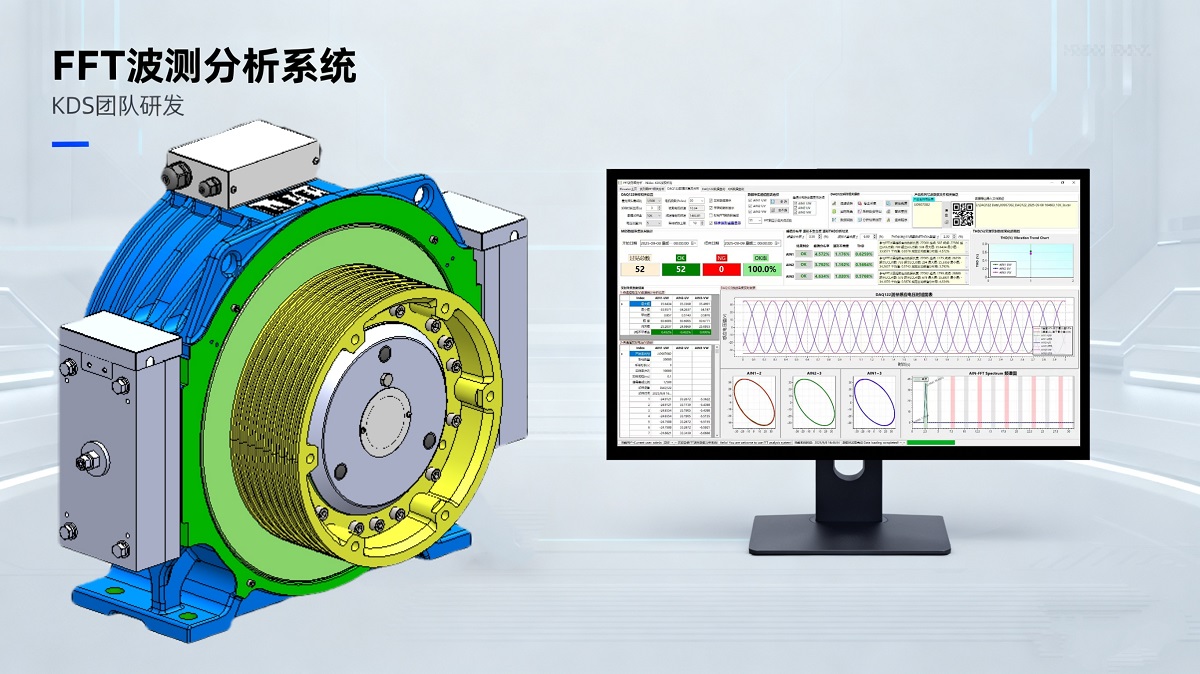 ట్రాక్షన్ మెషిన్ పనితీరు పరీక్ష రంగంలో, సంప్రదాయ పద్ధతుల్లో ప్రధానంగా వైబ్రేషన్ టెస్టింగ్, నాయిస్ టెస్టింగ్ మొదలైనవి ఉంటాయి. అయితే, వోల్టేజ్ వేవ్ఫారమ్లను ఖచ్చితంగా సంగ్రహించడం మరియు కార్యాచరణ డేటాను విశ్లేషించడం అనేది మోటారు స్థితిని నిర్ధారించడంలో ప్రధాన అంశం. విస్తృతమైన శుద్ధీకరణ తర్వాత, NIDEC ఎలివేటర్ మోటార్ బృందం స్వతంత్రంగా ట్రాక్షన్ మెషీన్ల బ్యాక్ ఎలక్ట్రోమోటివ్ ఫోర్స్ సూత్రం ఆధారంగా ఒక FFT వేవ్ఫారమ్ విశ్లేషణ వ్యవస్థను అభివృద్ధి చేసింది - సంక్లిష్టమైన బాహ్య సెన్సార్ల అవసరం లేకుండా, ఇది ట్రాక్షన్ మెషిన్ పరీక్ష కోసం మరింత సమర్థవంతమైన మరియు ఖచ్చితమైన పరిష్కారాన్ని అందించడం ద్వారా సిగ్నల్ మార్పిడి ద్వారా మాత్రమే సైన్ తరంగాలను ఉత్పత్తి చేయగలదు.