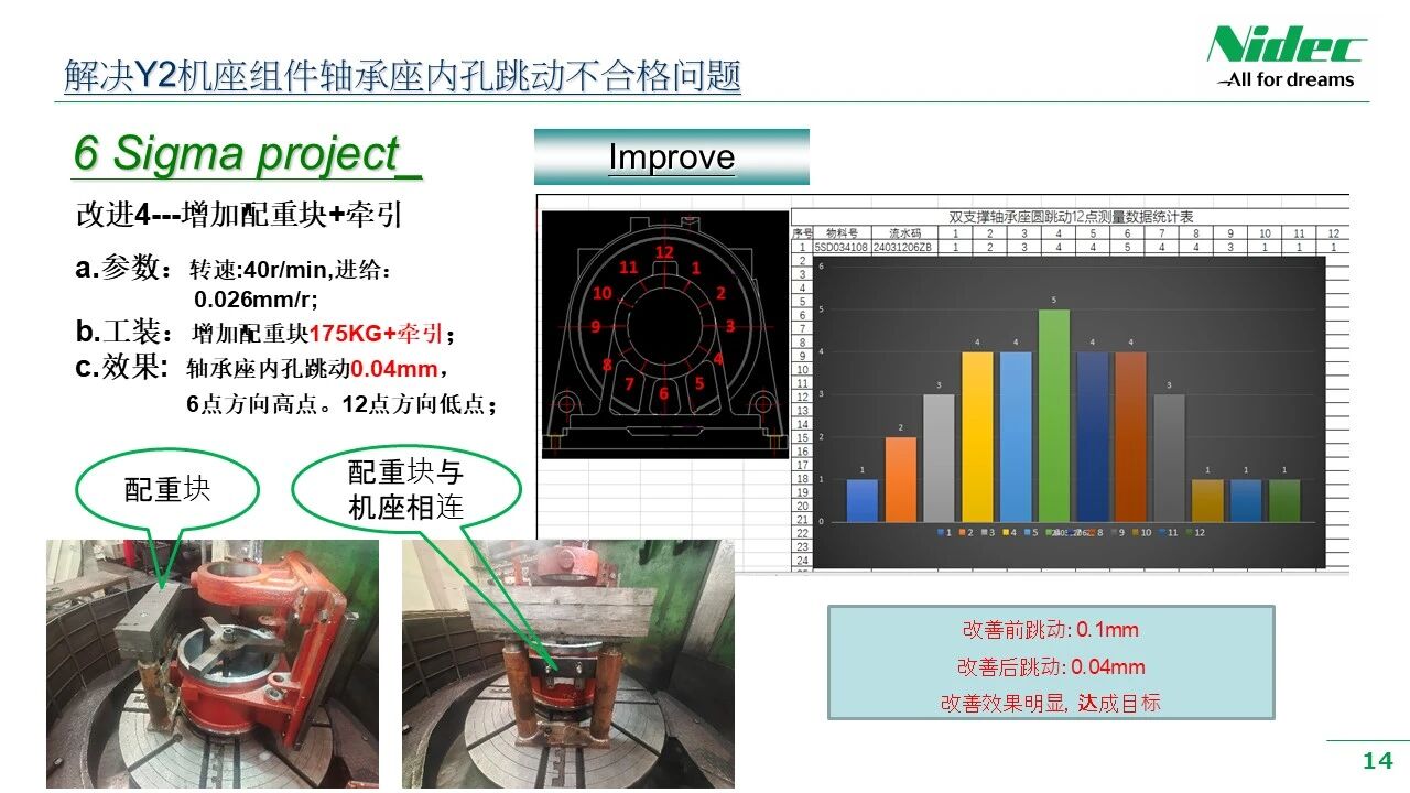 "స్వయంగా సంతృప్తి చెందండి, కస్టమర్లను సంతృప్తి పరచండి, నిజాయితీగా మరియు విశ్వసనీయంగా ఉండండి మరియు ఎక్సలెన్స్ కోసం కష్టపడండి" అనే కంపెనీ నాణ్యతా విధానం మరియు నిర్వహణ తత్వానికి కట్టుబడి, మేము అధిక ధర - ప్రభావం మరియు మరింత స్థిరమైన నాణ్యత కలిగిన ఉత్పత్తులను వినియోగదారులకు నిరంతరం అందిస్తాము. ఇటీవల, మ్యాచింగ్ వర్క్షాప్లో, ప్రాసెస్ చేసిన తర్వాత కొన్ని కీలక ప్రక్రియల యొక్క కీ కొలతలు లేదా రేఖాగణిత సహనం అస్థిరంగా ఉండి, 6 - సిగ్మా నియంత్రణ అవసరాలను తీర్చడంలో విఫలమయ్యే ఒక దృగ్విషయం ఉంది. కంపెనీ మేనేజ్మెంట్ దీనికి చాలా ప్రాముఖ్యతనిస్తుంది మరియు వర్క్షాప్ నాణ్యత మెరుగుదల టాస్క్ఫోర్స్ను ఏర్పాటు చేయడానికి వర్క్షాప్ను ప్రోత్సహించింది. ఈ టాస్క్ఫోర్స్లో సంబంధిత విభాగాల నాయకులు, సంబంధిత ఇంజనీర్లు, టీమ్ లీడర్లు మరియు ఫ్రంట్లైన్ ప్రొడక్షన్ ఉద్యోగులు ఉంటారు. 6 - సిగ్మా మెరుగుదల యొక్క DMAIC పద్ధతిని ఉపయోగించడం ద్వారా, సమగ్ర నాణ్యత మెరుగుదల ప్రచారం ప్రారంభించబడింది. బ్యాక్గ్రౌండ్ ఇన్వెస్టిగేషన్, డేటా సేకరణ, సమస్య సారాంశం, కారణ విశ్లేషణ మరియు స్వల్పకాలిక మరియు దీర్ఘకాలిక మెరుగుదల చర్యల సూత్రీకరణ వంటి మెరుగుదల కార్యకలాపాల శ్రేణి ద్వారా, నాణ్యత మెరుగుదల పని పూర్తిగా నిర్వహించబడింది. ఈ మెరుగుదల కార్యకలాపం 6 - సిగ్మా మెరుగుదల సాధనాలను సమాంతర పద్ధతిలో అర్థం చేసుకోవడం, వర్తింపజేయడం మరియు ప్రచారం చేయడంలో గ్రాస్ - రూట్స్ మేనేజర్లు మరియు ఉద్యోగుల ఆచరణాత్మక సామర్థ్యాన్ని సమగ్రంగా మెరుగుపరిచింది. ఇది యంత్ర భాగాల నాణ్యత లక్షణాల యొక్క వైవిధ్యం మరియు హెచ్చుతగ్గులను తగ్గించడంలో సహాయపడుతుంది, తద్వారా మోటార్ల యొక్క మొత్తం తయారీ నాణ్యతను మెరుగుపరుస్తుంది మరియు వినియోగదారులకు మెరుగైన - నాణ్యమైన ఉత్పత్తులను అందించడంలో సహాయపడుతుంది.