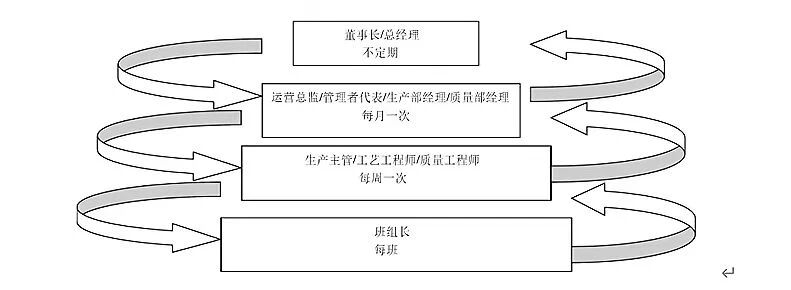 ఉత్పత్తి సైట్ యొక్క ఆన్-సైట్ ఆడిట్ కార్యకలాపాలలో వివిధ స్థాయిలలోని నిర్వాహకులు అన్ని ఉద్యోగుల భాగస్వామ్యాన్ని నొక్కి చెబుతుంది. సంస్థ యొక్క సంస్థాగత నిర్మాణం ఆధారంగా, పాల్గొన్న స్థాయిలు ఈ క్రింది విధంగా ఉన్నాయి: