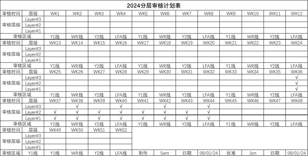 మొదట, మెరుగుదల చొరవ యొక్క దీర్ఘకాలిక వ్యవధిని మరియు మెరుగుదలల ప్రభావాన్ని బాగా ప్రదర్శించాలనే కోరికను పరిశీలిస్తే, కార్యకలాపాలను ప్లాన్ చేయడం మరియు లేయర్డ్ ప్రాసెస్ ఆడిట్ షెడ్యూల్ను రూపొందించడం అవసరం. ఇంజనీర్ల కోసం LPA ని సర్దుబాటు చేయడం చాలా సులభం అయితే, సీనియర్ నాయకులు LPA లో పాల్గొనే సమయాన్ని తాత్కాలికంగా షెడ్యూల్ చేయడం కష్టం. అందువల్ల, ఆడిట్ ప్రణాళిక అవసరం మరియు ముందుగానే జారీ చేయాలి.