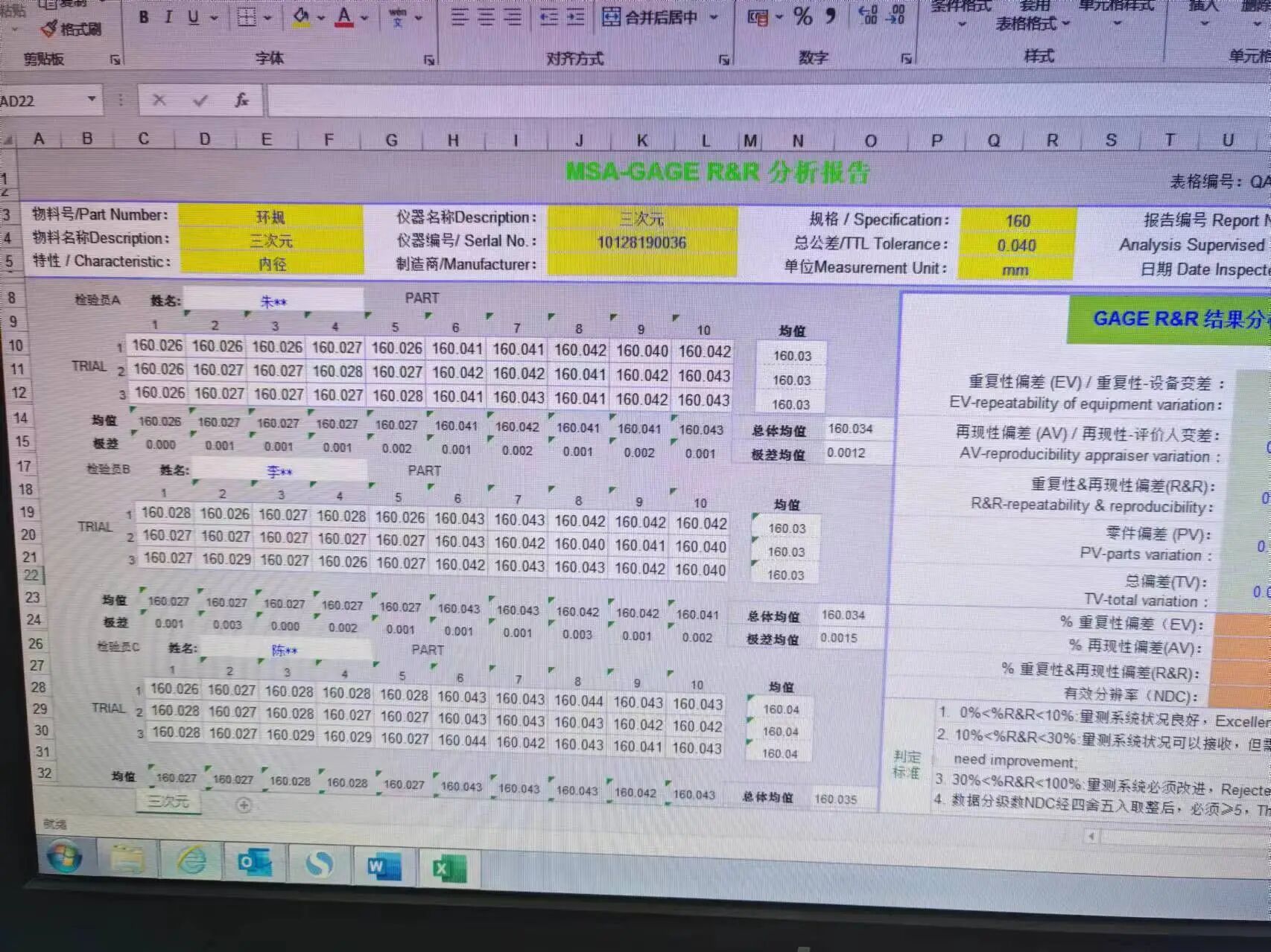 మొదట, పరికరాలు ఎల్లప్పుడూ సాధారణ స్థితిలో ఉండేలా పరికరాలను ప్రారంభించేటప్పుడు పరికరాల ఆపరేటర్లు అంశాల పనితీరు తనిఖీలను నిర్వహిస్తారు. అదే సమయంలో, హై-ప్రెసిషన్ టెస్టింగ్ పరికరాల కోసం, పరీక్ష డేటా యొక్క ఖచ్చితత్వం మరియు విశ్వసనీయతను నిర్ధారించడానికి పరికరాల నిర్వహణ పర్యావరణ అవసరాలకు అనుగుణంగా పరీక్ష వాతావరణం యొక్క ఉష్ణోగ్రత మరియు తేమ ఖచ్చితంగా పర్యవేక్షించబడతాయి. కంపెనీ టాలెంట్ డెవలప్మెంట్కు చాలా ప్రాముఖ్యతనిస్తుంది మరియు ఎక్విప్మెంట్ ఆపరేటర్లు త్వరగా ఎక్విప్మెంట్ ఆపరేషన్ నైపుణ్యాలను సాధించగలరని నిర్ధారించడానికి సమగ్రమైన మరియు సమర్థవంతమైన రోలింగ్ శిక్షణ ప్రణాళికను రూపొందించింది. 2023లో, మెట్రాలజీ లాబొరేటరీ సంస్థ కోసం 35 వెన్నెముక పరికరాల ఆపరేటర్లకు శిక్షణనిచ్చి, పరీక్షా పరికరాల ఉపయోగం మరియు జాగ్రత్తలపై 6 ప్రత్యేక శిక్షణా సమావేశాలను నిర్వహించింది. ముఖ్యమైన పరికరాల కోసం, వివరణాత్మక GAUGE R&R విశ్లేషణ ప్రణాళిక రూపొందించబడింది. 2023లో, బహుళ కీ పరీక్షా పరికరాలపై GAUGE R&R విశ్లేషణ నిర్వహించబడింది మరియు పరికరాల ఆమోదయోగ్యమైన విచలన అవసరాల కంటే వాస్తవ విచలనం గణనీయంగా తక్కువగా ఉంది.