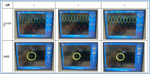 అదే పరిస్థితుల్లో, ఎన్కోడర్ల యాంటీ-ఇంటర్ఫరెన్స్ పనితీరు మరియు సిగ్నల్ రిజల్యూషన్ను పరిమాణాత్మకంగా పోల్చడానికి వివిధ బ్రాండ్ల ఎన్కోడర్ల వేవ్ఫార్మ్ వ్యాప్తి, వేవ్ఫార్మ్ పీక్-టు-పీక్ విలువ మరియు లిస్సాజౌస్ ఫిగర్ ఏరియా పరీక్షించబడతాయి.